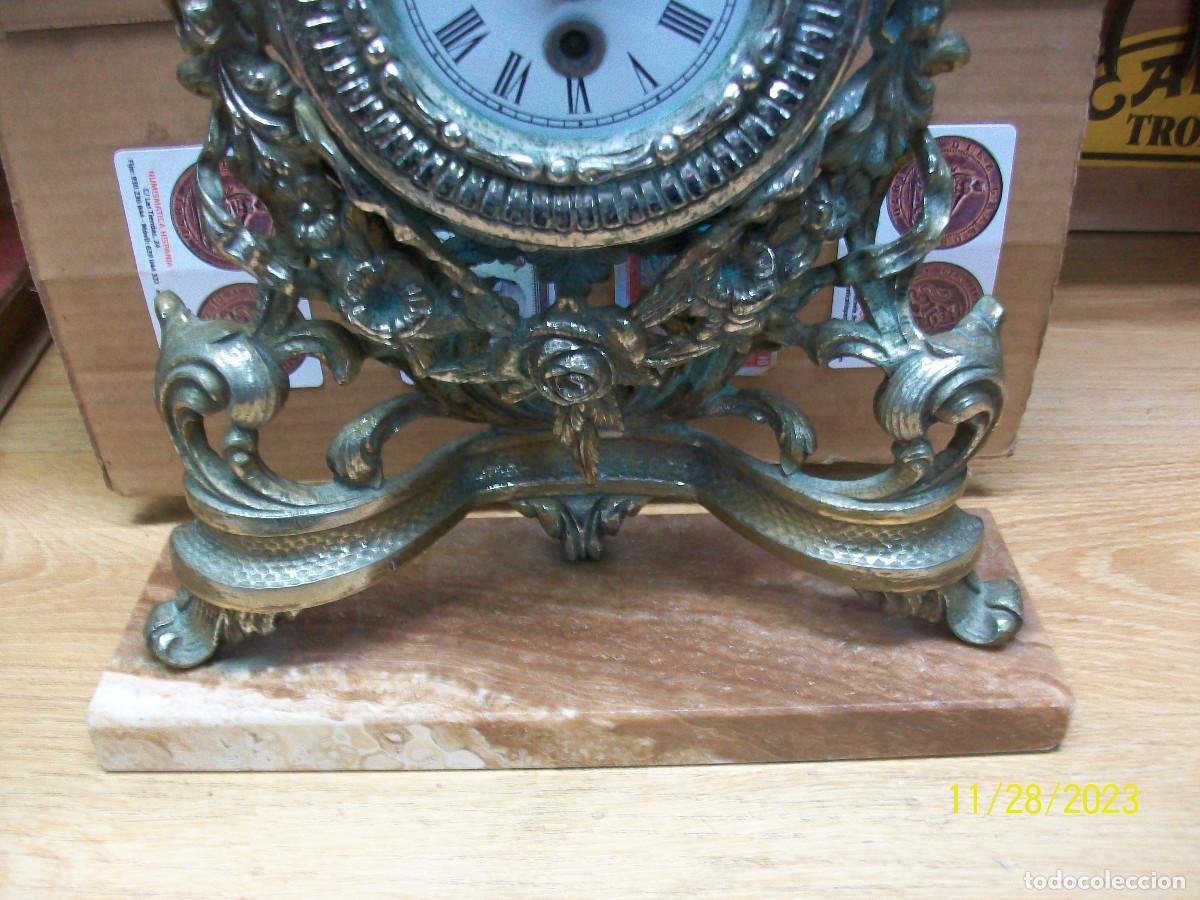 ANTIGUO RELOJ A CUERDA-NO FUNCIONA-DE METAL-BASE DE MARMOL cantidad