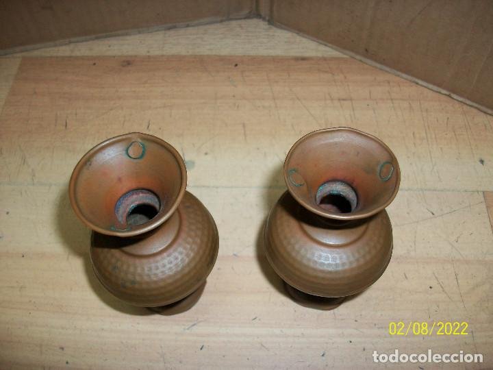 / PAREJA DE ANTIGUOS FLOREROS DE COBRE