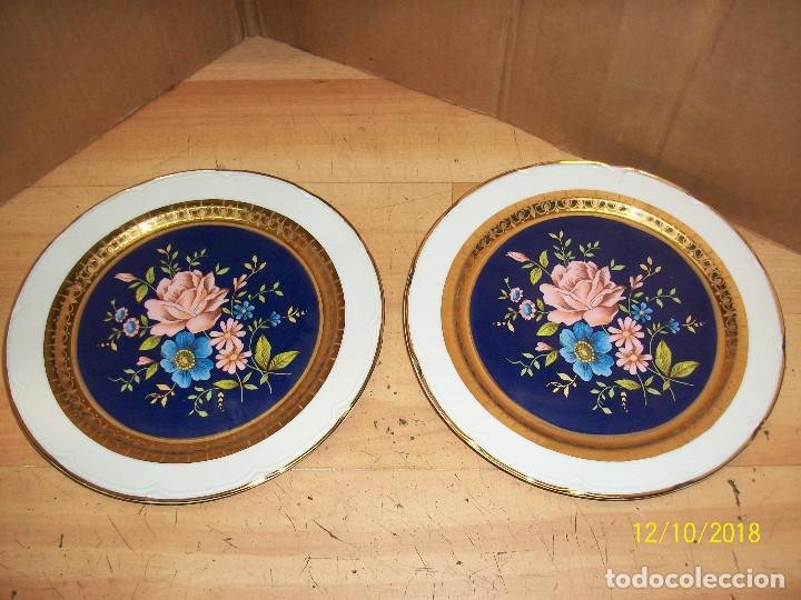 PAREJA DE PLATOS CON FLORES DE PORCELANA
